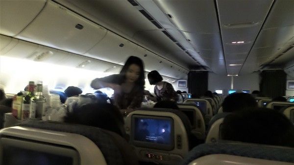 Donc, à 23h40 comme prévu, nous décollons de Singapour. Les 13 heures de vol sont de plus en plus difficiles à supporter plus nous vieillissons.