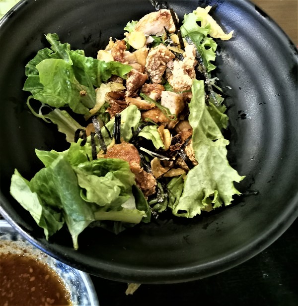 Et, pour clôturer le repas, une salade au poulets et algues. Ce repas pour deux personnes nous a coûté un peu moins de 500 pesos (9€) et tout était délicieux.